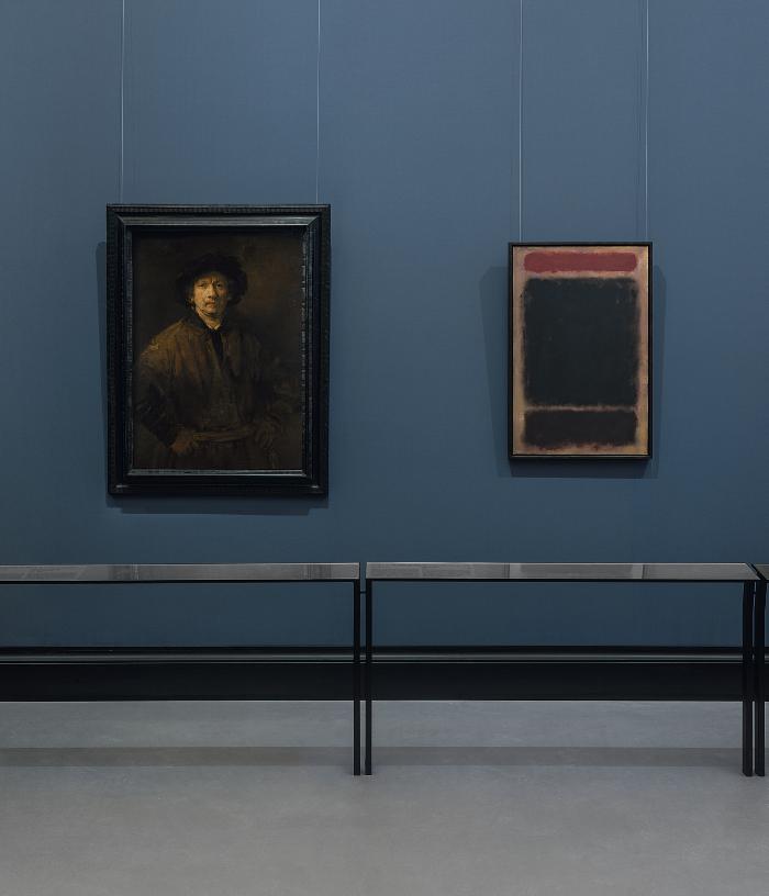 Large Self-Portrait (1652). Two additional self-portraits by Rembrandt, both owned by the Kunsthistorisches, flanked the juxtaposed works. Rothko encountered works by the Dutch master throughout his career and developed an admiration for his artistic innovation. His introduction to Rembrandt began in the 1920s with the permanent collection at the Metropolitan Museum of Art and deepened with exhibitions such as